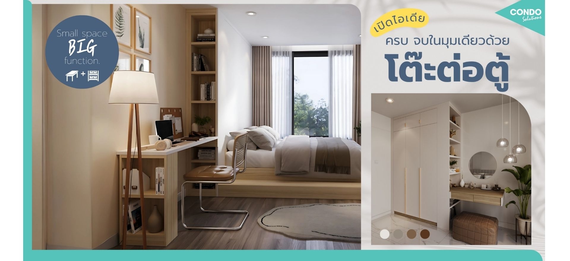 ใช้พื้นที่คุ้มทุกตารางนิ้วด้วย #โต๊ะต่อตู้ ที่ช่วยให้ห้องเล็กมีฟังก์ชันมากกว่าที่เคย เพราะแค่เฟอร์ฯชิ้นเดียว ก็เปลี่ยนมุมเล็ก ๆ ให้เป็นมุมทำงานหรือมุมแต่งหน้า มาพร้อมชั้นวางที่สามารถจัดวางของได้ตั้งแต่พื้นจรดฝ้า