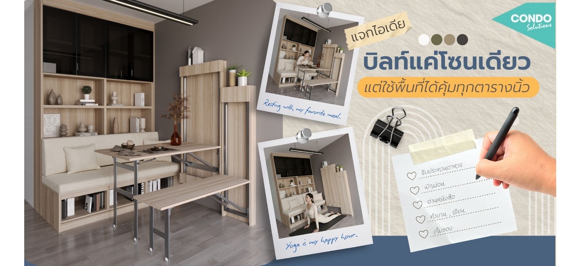 บิลท์อินโซนเดียว…แต่ใช้ชีวิตได้ครบทุกรูปแบบ แม้คอนโดมีพื้นที่จำกัด ไม่ได้แปลว่าต้องตัดฟังก์ชันออกเสมอไป แค่ดีไซน์ให้ “ใช้ได้งานจริง” ทุกตารางนิ้วก็มีความหมาย