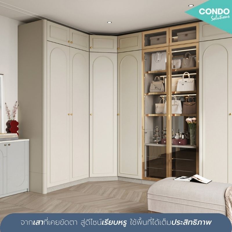 มุมเสาไม่ใช่ปัญหา…ถ้าออกแบบให้ถูกจุด เลิกปล่อยพื้นที่ข้างเสาให้เสียเปล่า เปลี่ยนมุมที่เคยเกะกะ ให้กลายเป็นตู้เข้ามุมดีไซน์หรู ที่ทำให้ทั้งห้องดูแพงขึ้นทันที