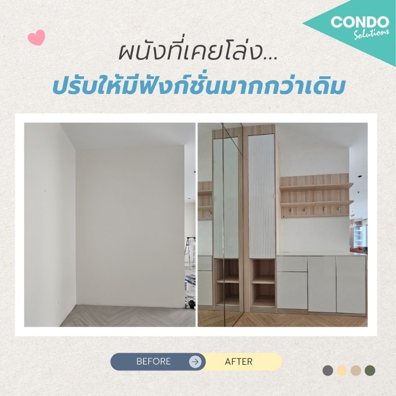 เปลี่ยนพื้นที่เดิม เติมฟังก์ชันครบ พร้อมดีไซน์ที่ลงตัวกับไลฟ์สไตล์ของคุณ เราดูแลให้ครบ จบในที่เดียวแบบไม่ต้องปวดหัวเรื่องช่าง ไม่ว่าจะเป็นงานเฟอร์นิเจอร์, งานตกแต่ง และงานระบบอื่น ๆ เราก็เก็บรายละเอียดให้เนี้ยบทุกจุด